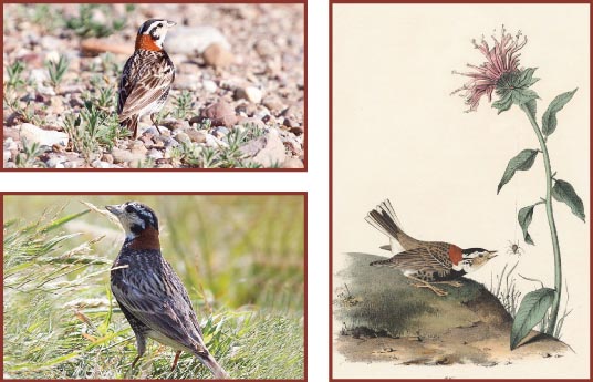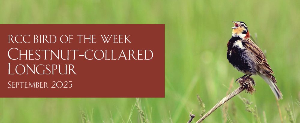 Chestnut-collared Longspur - Ross Feldner Chestnut-collared Longspurs are named for the long, slender claw (spur) on their hind toe and the rusty color on the nape of their neck. They prefer native prairie lands with short grass and open vegetation. They forage on the ground eating mainly seeds but add insects such as grasshoppers and spiders to their diet in summer. Like many prairie birds their numbers have diminished due to habitat loss. Chestnut-collared Longspurs are known to take to the skies to proclaim territory and attract mates. They will sing from fence posts or the top of brush but when things heat up they take flight and then slowly flutter down to the ground with their wings outstretched all the while holding their heads up singing. Throughout the nesting period from May to August, Chestnut-collared Longspurs are found in shortgrass and mixed-grass areas of the northern Great Plains. Their preference for short grasses means they benefit from cattle grazing on native pastures. In the non-breeding season, they migrate southward to the southern Great Plains, reaching as far as the Chihuahuan Desert in Mexico. After a pair have mated, the female excavates a shallow hole in the ground usually near a clump of grass. After the hole is dug she builds a grass nest and typically lays 3 to 5 eggs. | |