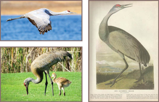 Sandhill Crane - Ross Feldner This stately bird gets its common name from its habitat such as Nebraska’s Sandhills on the great plains of America. They are well known for their loud, trumpeting call that can be heard from a great distance. Mated pairs will do “unison calling” where they stand close together and call in a synchronized and complex duet. Sandhill Cranes are skilled, soaring birds with a enormous wingspan reaching close to 8 feet! They can stay aloft for hours riding thermals for lift with only occasional flapping of their wings. They migrate south in the winter often forming huge flocks of over 10,000 individuals at some their wintering grounds. Sandhill Cranes live in pairs and family groups throughout the year with unrelated cranes forming “survival groups” that roost and forage together for seeds and vegetation, keeping their bills down to the ground as they root around for food. Sandhill Cranes are also fond of cultivated foods such as corn, wheat, cottonseed, and sorghum. Like most conspicuous ground-dwelling species, Sandhill Cranes are at risk from predators. Corvids, such as ravens and crows, gulls, jaegers, raptors, and mammals such as foxes, coyotes, and raccoons feed on young cranes and eggs. | |
