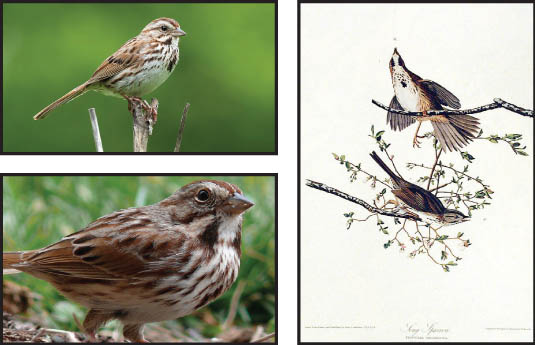 Song Sparrow - Ross Feldner What makes this little bird so remarkable? It is the most common and widespread sparrow native to North America. Of all the native sparrows in North America it is the most abundant, variable, and adapable. It derives it name from its beautiful repertoire of songs. Males use their complex song to declare ownership of territory and naturally to attract a mate. Their singing is crisp and clear and although one bird may know many songs, up to 20 tunes they have been known to have as many as 1,000 variations on the basic theme! A 2022 study by Duke University found that male song sparrows memorize a 30-minute long playlist of their songs. One of the songs often heard in suburban locations closely resembles the opening four notes of Ludwig van Beethoven's Symphony No. 5. The Song Sparrow favors marshes and brushland but also has thrived in human dominated areas like suburbs and farms. In the southern half of their range they are permanent residents while the northern populations migrate to the southern US and Mexico. Eating mainly insects and seeds, they forage on the ground, in brush and sometimes in shallow water looking for small crustaceans. The Song Sparrow recognizes enemies by both instinctual and learned patterns, and adjusts its future behavior based on its own experiences and watching other birds interact with their enemies. Comparisons of experiments with hand-raised birds to observation of birds in the wild suggest that the fear of owls and hawks is instinctual, but fear of cats is learned. | |
